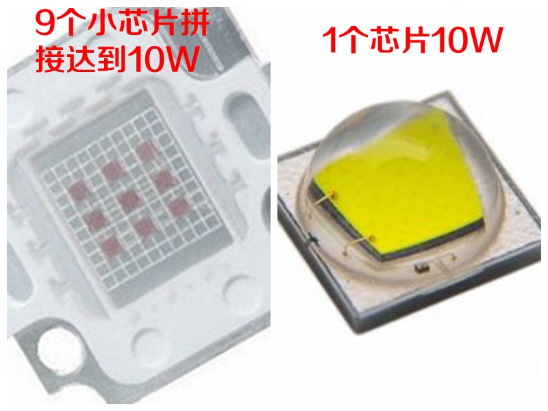 二、LED光源:光源面积越小越好,越小就越接近点光源,光源越小色差和相差越小,投影出来的 图案越清晰。想要做小必须采用大尺寸规格的芯片集成技术,一般需要专业定制, 由于成本关系,市面上大多采用LED传统照明COB光源,采用的都是小芯片拼接, 故无法把光源发光面做的很小。