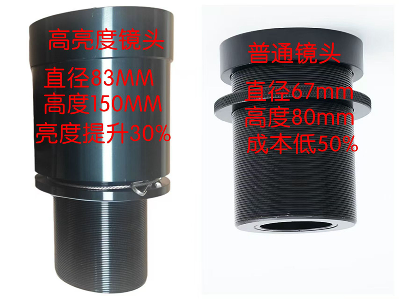 九、采用大尺寸设计镜头,增加了光源亮度利用率,比普通小尺寸镜头亮度提升30%以上。