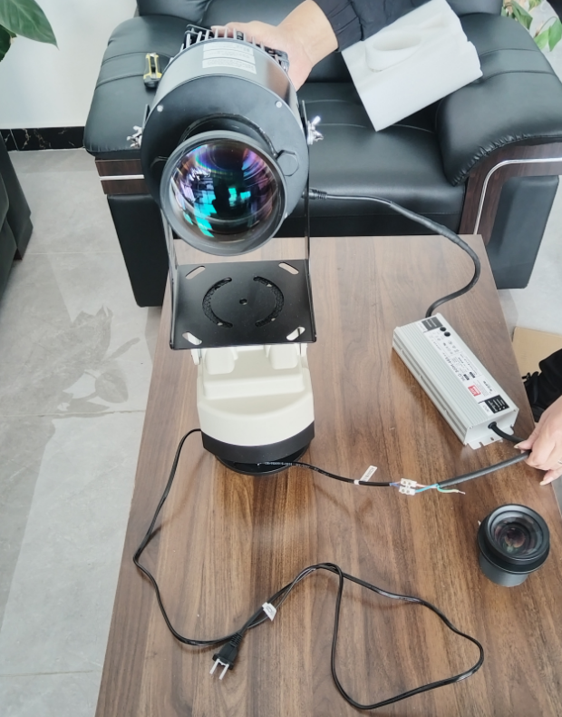 强光投影压制灯,采用特种强光和特殊设计的投影内容,并用动态旋转的方式覆盖在原有的非法投影内容上,