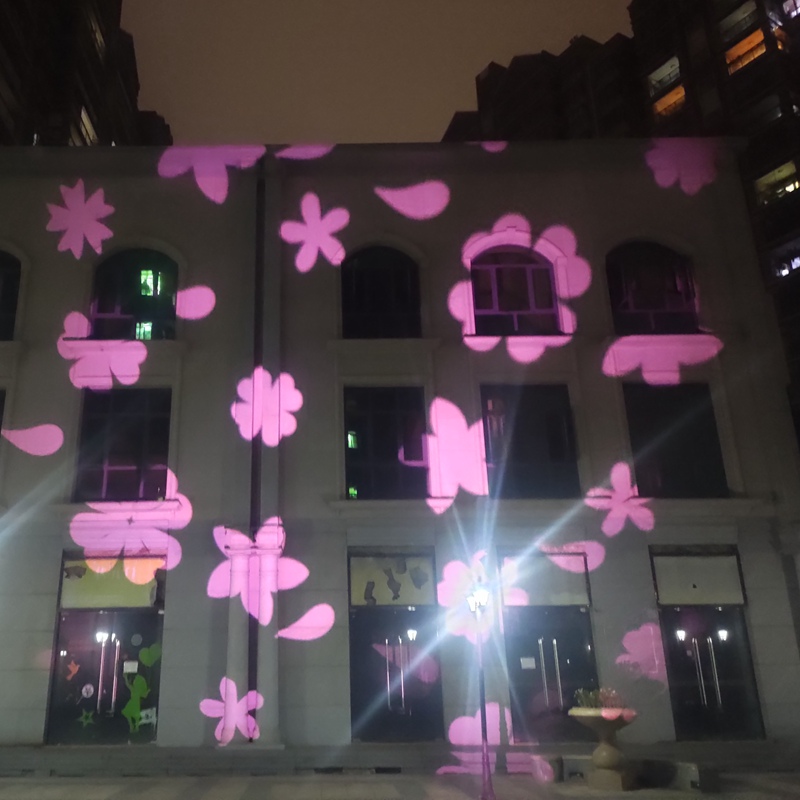 落花投影灯,投影动态花朵飘落或树叶的效果,营造浪漫氛围。 电压:85-265V AC 功率:150W (1:1镜头投影距离5米以内) 300W (1:1镜头投影距离10米以内) 500W (1:1镜头投影距离15米以内) 防护等级:IP65 外壳材质:铝合金 外壳颜色:黑色 产品尺寸:260*190*260mm